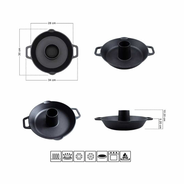 De gietijzeren chickensitter heeft rondom de kipstandaard een brede rand voor bijgerechten, en is zeer goed bestand tegen hoge temperaturen. Het voordeel is dan ook dat het gietijzer de temperatuur lang vast houdt. Dus wanneer de pan van de Kamado of uit de oven komt en op tafel gezet wordt, kan het lang tafelen beginnen want je kip en bijgerecht blijft lang warm.