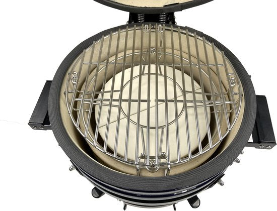Zowel de Kamado als de vuurschaal zijn gemaakt van cordieriet keramiek. Het onderstel is gemaakt van gehard staal. Met behulp van de gietijzeren margrietschijf en het ventilatierooster regel je eenvoudig de temperatuur. Door de twee stevige HDPE handvatten aan de zijkant is deze barbecue eenvoudig verplaatsbaar. Ook het handvat van het Deksel is van HDPE. Extra hygiënisch, bestand tegen het Hollandse klimaat en het ziet er gewoon super stoer uit.