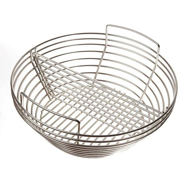Deze kolenmand is gemaakt van sterk roestvrijstaal dat goed bestand is tegen hoge temperaturen en daarom geweldig voor het gebruik in de barbecue. We hebben kolenmanden in vier maten. Het is belangrijk dat de goede maat kolenmand wordt gebruikt, de kolenmand mag niet vast komen te zitten in de vuurring. Er moet ruimte blijven tussen deze twee onderdelen voor een goede werking van de luchtcirculatie in de barbecue. Deze kolenmand XXL is ideaal voor de 25 inch Kamado XXL.