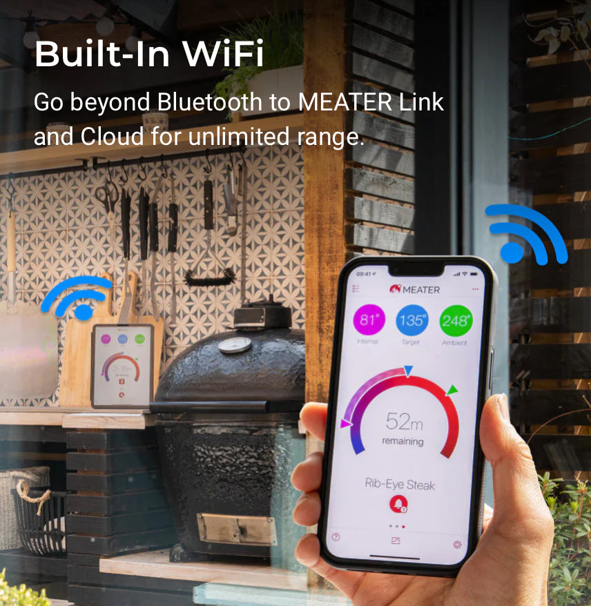 De MEATER Pro XL is de geavanceerde opvolger van de MEATER Block, ontworpen voor de ultieme kookervaring. Deze slimme draadloze thermometer biedt veel meer precisie, gebruiksgemak en betrouwbaarheid dan alle vergelijkbare vleesthermometers. Met zijn extra lange bereik en verbeterde connectiviteit, is het de perfecte tool voor zowel binnen- als buitengebruik. Met meerdere sensoren die de interne temperatuur van het vlees en de omgeving monitoren, zorgt de MEATER Pro XL voor optimale kookresultaten, ongeacht de bereidingswijze.
